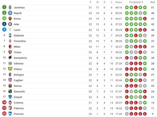 Milan je nakon ovog poraza ostao osmoplasirana ekipa italijanske Serije A, dok je Sampdoria na 10. poziciji.