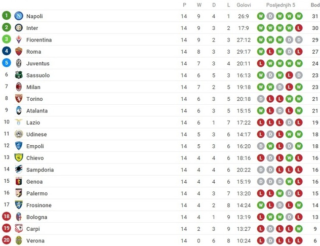 Odbrana Intera je, netipično za njih ove sezone, bila potpuno smušena, što je iskoristio Gonzalo Higuain i poslao loptu iza leđa nemoćnog Samira Handanovića.