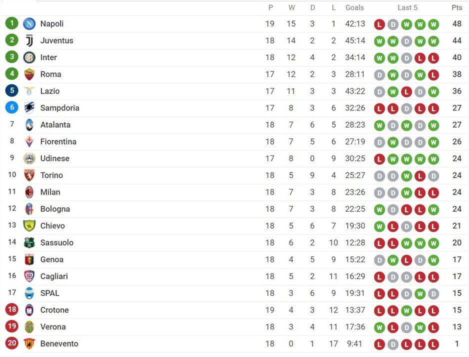 Lider italijanskog prvenstva je do odlučujućeg pogotka stigao u 17. minuti susreta. Nakon prelijepe akcije Allan je asistirao Hamšiku, a slovački reprezentativac je lijevom nogom matirao nemoćnog Cordaza koji je samo pogledom ispratio loptu koja je završila u njegovom golu.
