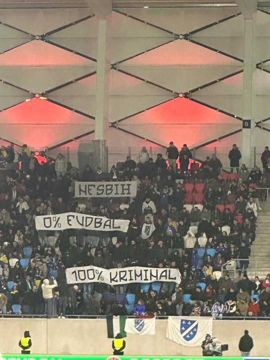 Uz bakljadu, navijači su istakli parolu na kojoj je pisalo "NSBiH, 0% fudbal, 100% kriminal", a snimak ovih dešavanja pogledajte na ovom linku.