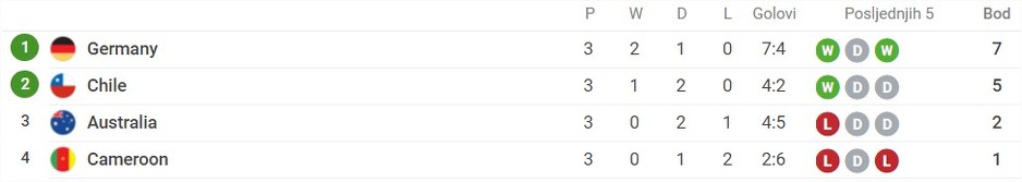 Njemačka je rezultatom 3:1 savladala Kamerun. Golove za Elf su postigli Demirbay u 48., te Werner u 66. i 81. minuti susreta, dok je za Kamerun pogodak postigao Aboubakar u 78. minuti.