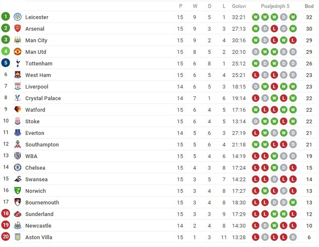 Rezultati 15. kola Premiershipa: