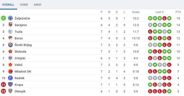 S druge strane, Olimpik je na posljednjoj poziciji s tri osvojena boda.