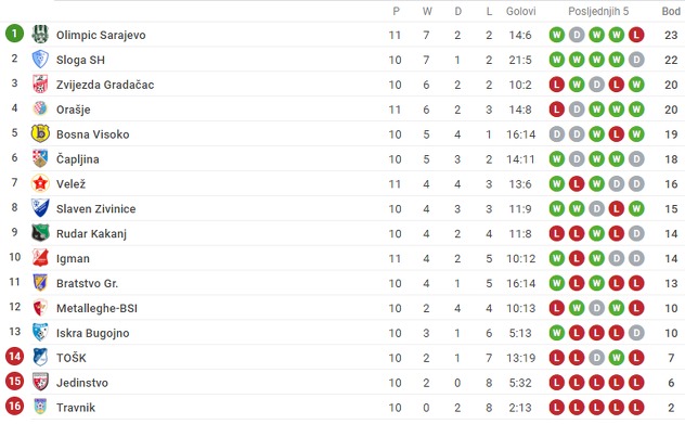 - petak: SARAJEVO: Olimpik - Orašje 0:1