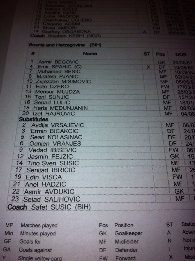 Selektor nogometne reprezentacije Bosne i Hercegovine, Safet Sušić, odlučio je napraviti nekoliko izmjena u sasatvu u odnosu na prvu utakmicu protiv Argentine.