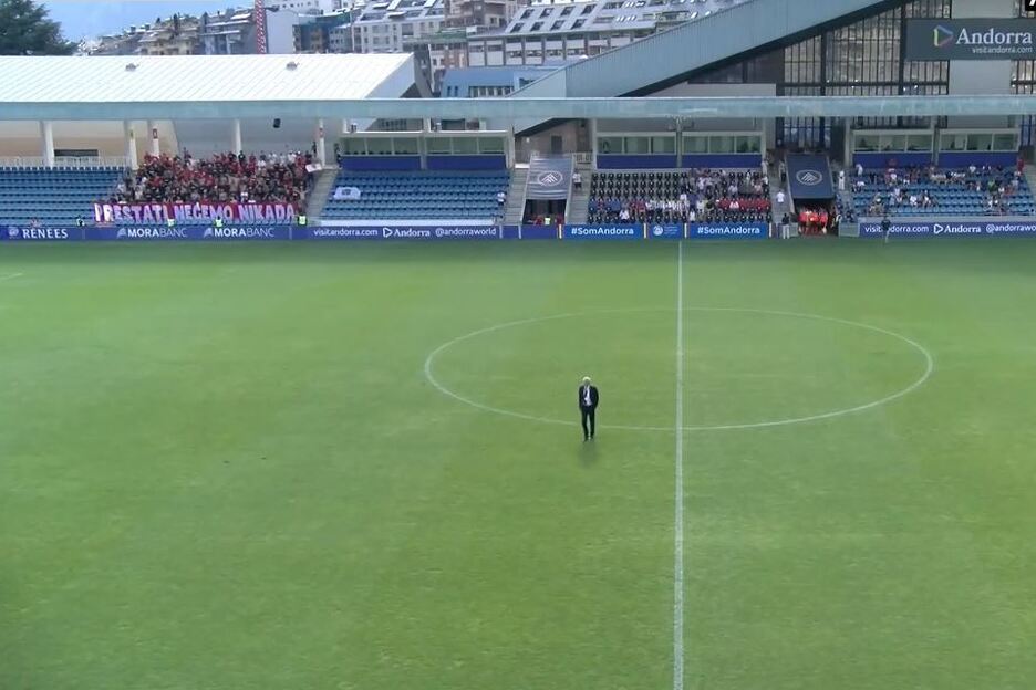 Utakmica između Intera i Veleža počela je u 18 sati na Estadi Nacional u Andorra La Velli s kapacitetom 3.306 sjedećih mjesta, ali su ona pretežno prazna jer utakmica nije privukla pažnju domaćih navijača.