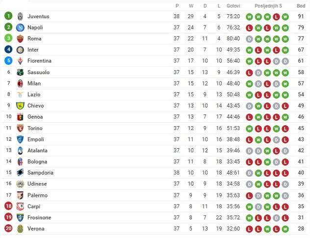 U posljednjem kolu italijanske Serie A Juventus, koji je već ranije osvojio titulu prvaka, je pregazio Sampdoriju na domaćem terenu sa 5:0.