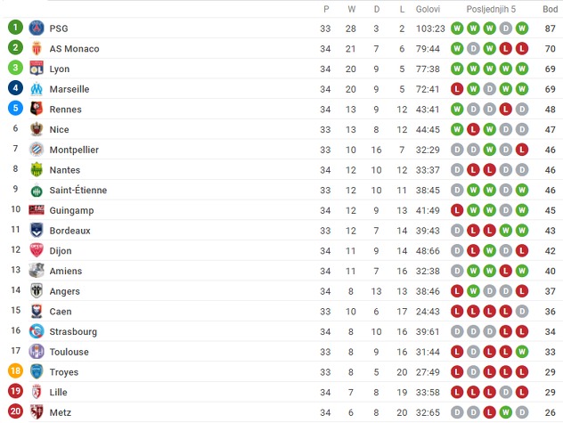 Amiens - Strasbourg 3:1 Guingamp - Monaco 3:1 Metz - Caen 1:1 Toulouse - Angers 2:0