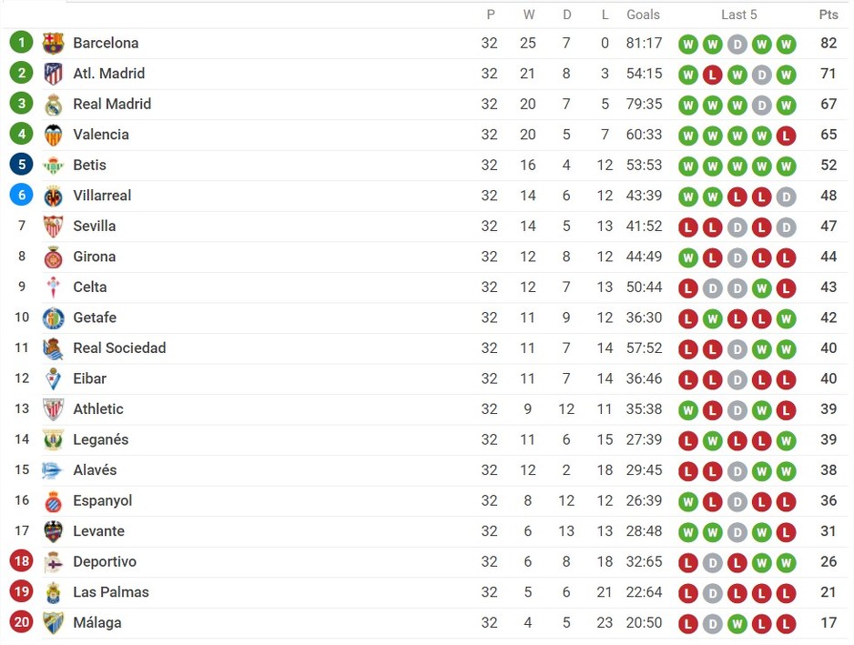 Ranije danas postignuti su sljedeći rezultati: Eibar - Alaves 0:1, Atletico - Levante 3:0, Getafe - Espanyol 1:0.