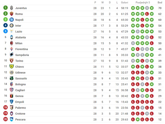 Roma je s novom pobjedom prestigla Napoli na tabeli i sada je drugoplasirana ekipa Serije A s osam bodova zaostatka u odnosu na lidera Juventusa. Palermo je u opasnoj zoni na 18. mjestu.