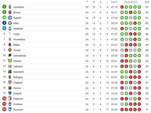 Sampdorija je zahvaljujući današnjoj pobjedi preskočila Chievo i sada je desetoplasirana ekipa Serije A, dok je Bologna pala na 15. poziciju.