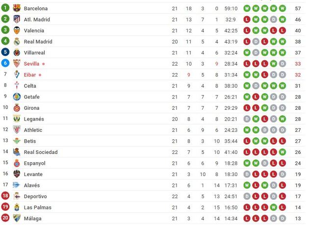 Ovom pobjedom Eibar se dodatno približio Sevilli i nakon 22 odigrana kola imaju 32 boda, jedan manje od ekipe iz Andaluzije, a u sljedećem kolu očekuje ih gostovanje kod Leganesa. S druge strane, Montella i njegovi momci će na svom stadionu igrati protiv Girone.