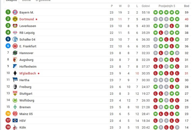 Ovom pobjedom Dortmund se vratio na drugu poziciju sa 37 osvojenih bodova, dok je M'gladbach ostao na 10. mjestu sa 31 osvojenim bodom.