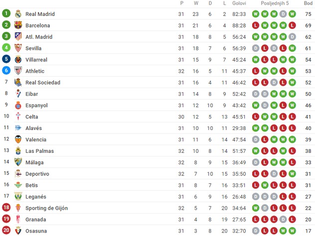 Real Madrid se s novom pobjedom učvrstio na vrhu s šest bodova prednosti u odnosu na Barcelonu. Sporting je na 18. poziciji u opasnoj zoni.
