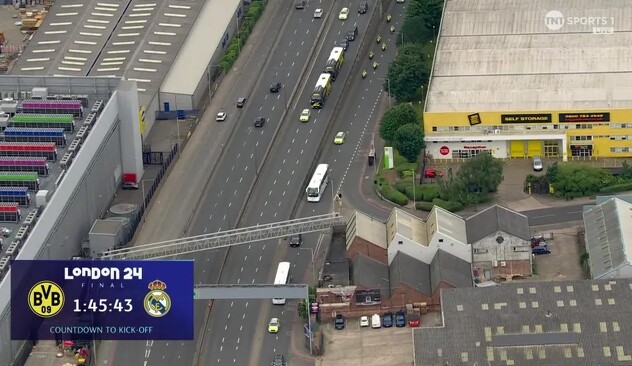 Još jedna zanimljiva scena dogodila se u saobraćaju. Naime, policija je na autoputu zaustavila dva autobusa s nogometašima Borussije Dortmund i zadržala ih dvadesetak minuta, sve dok autobusi s igračima Real Madrida nisu stigli na stadion Wembley. Dva tima su se dogovorila da Realovi autobusi stignu prvi na stadion.
