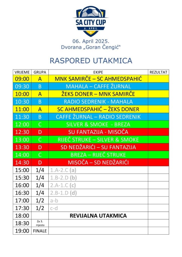 Na kraju, istaknuli su da je sam povod – Dan grada Sarajeva – i više nego dovoljan poziv svima da dođu i učestvuju u obilježavanju ovog važnog datuma. A nema sumnje da će uživati i u dobrom futsalu i odličnom druženju.