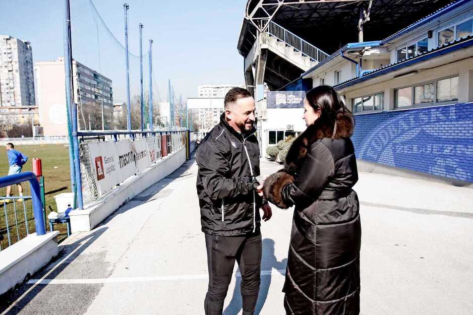 Otkrivanju spomen ploče prisustvovala je i gradonačelnica Sarajeva Benjamina Karić, koja je iskoristila priliku i razgovarala s trenerom Željezničara Edisom Mulalićem.