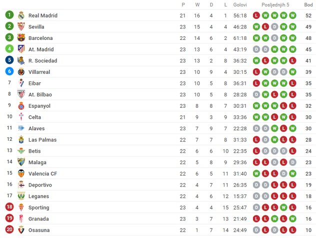 Valencia je i pored pobjede ostala na 15. mjestu, dok je Bilbao osmoplasirana ekipa La lige.