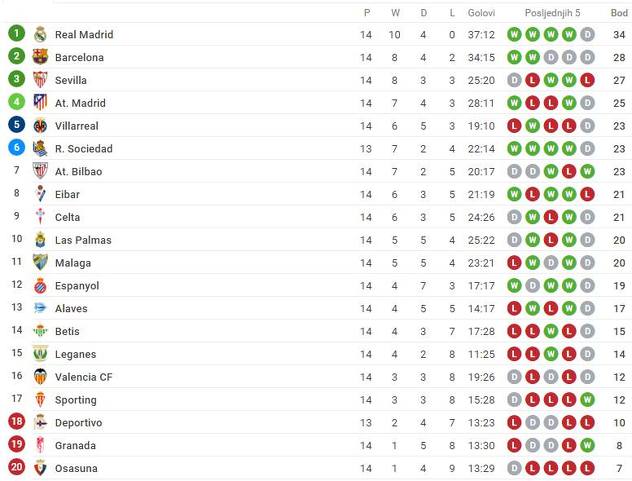 Ostali rezultati 14. kola La Lige (nedjelja):