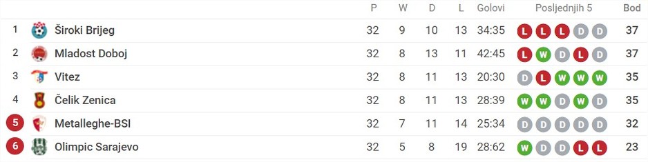 Na taj način završena je borba za opstanak u elitnom rangu bh. nogometa u kojem naredne godine nećemo gledati Metalleghe i Olimpic.