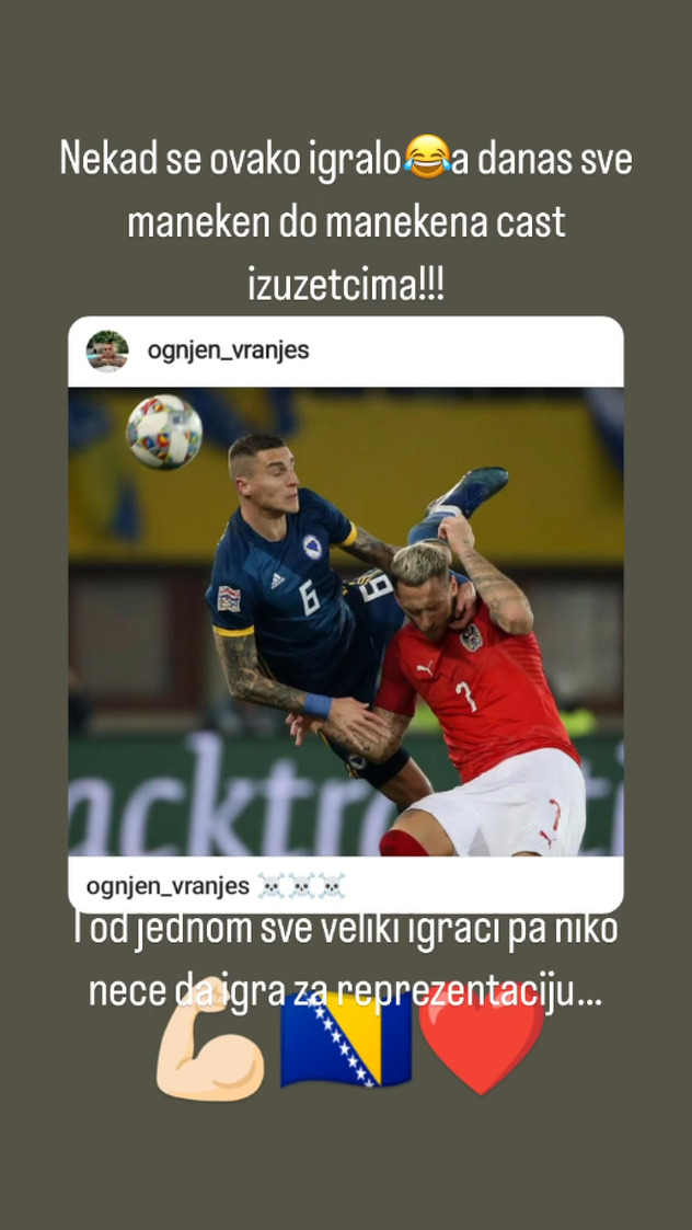 "Nekad se ovako igralo, a danas sve maneken do manekena. Čast izuzecima. Odjednom svi veliki igrači pa niko neće igrati za reprezentaciju", napisao je uz fotografiju.