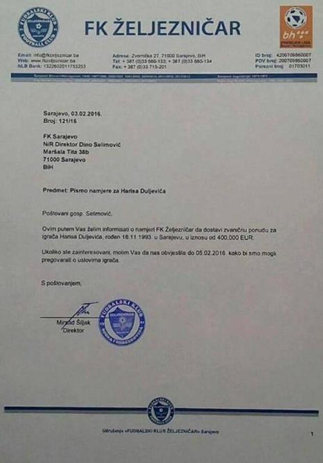 U zvaničnoj ponudi je zatražen odgovor direktora FK Sarajevo Dine Selimovića do 5. februara, kako bi klub s Grbavice mogao pregovarati o uslovima igrača ukoliko ponuda bude prihvaćena.