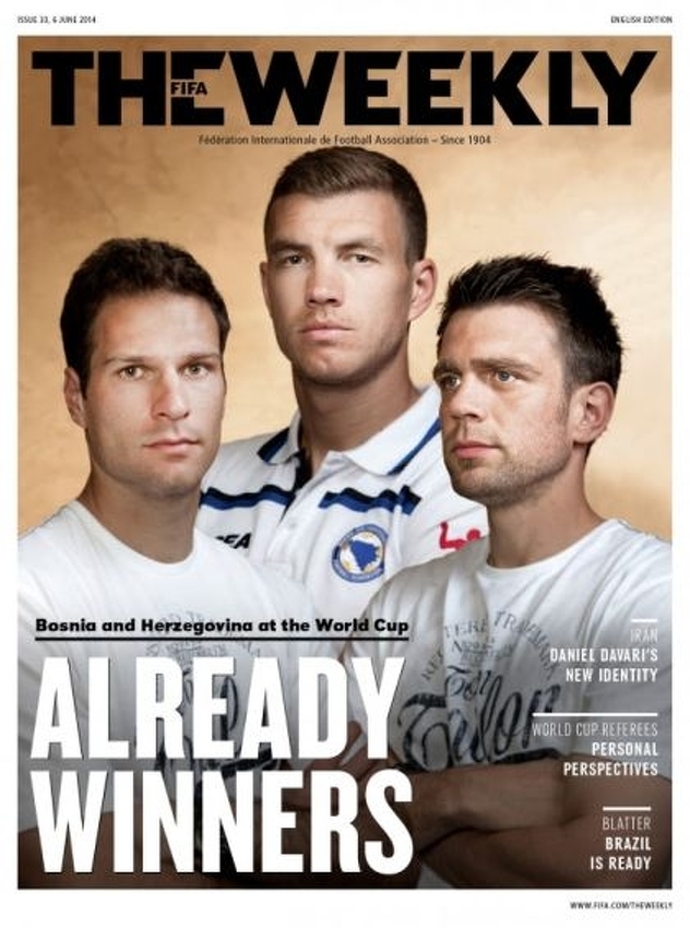 Na naslovnici Zmajeve predstavljaju Edin Džeko, Asmir Begović i Zvjezdan Misimović, a FIFA-a podsjeća da "nacija u usponu još uvijek nosi ožiljke rata iz devedesetih te da je njihov fokus u ovom broju na "nogometnim herojima zemlje".