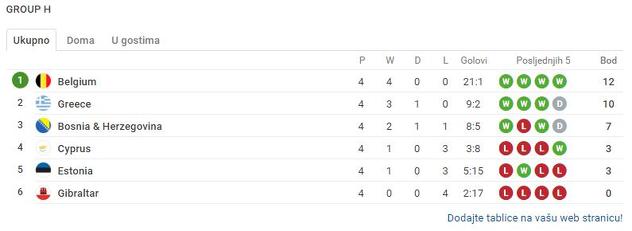 BiH BiH – Estonija 5:0 Belgija – BiH 4:0 BiH – Kipar 2:0 Grčka – BiH 1:1