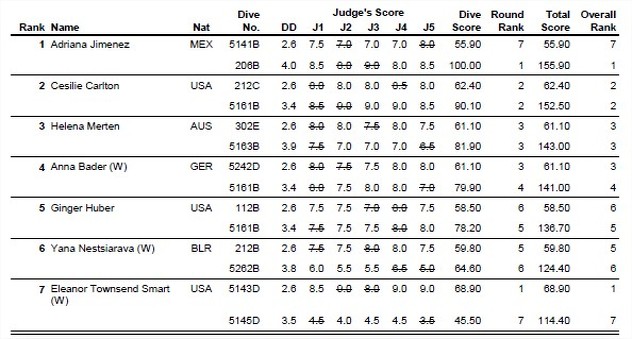 Nakon prvog dana takmičenja, kada su održane po dvije runde skokova u muškoj i ženskoj konkurenciji, vodeće pozicije zauzeli su Kris Kolanus i Adriana Jimenez. I današnje runde otvorit će skokovi takmičarki.