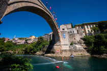 Akcija prve runde odvijala se s luka Starog mosta smještenog srcu lavirinta popločanih ulica starog grada, dok će takmičari u preostalim rundama skakati s platforme visine 21 metar za žene i 27 metara za muškarce.