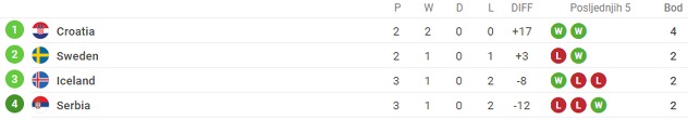 Srbiji je za prolazak dalje potrebno da Švedska ne izgubi od Hrvatske jer bi u tom slučaju zauzeli treću poziciju, koja vodi u naredni krug.