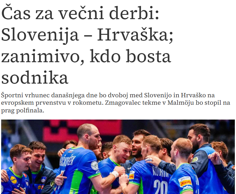 "Vrijeme je za vječni derbi: Slovenija – Hrvatska; zanimljivo je vidjeti ko će suditi", stoji u naslovu teksta objavljenog na stranici Delo.si.