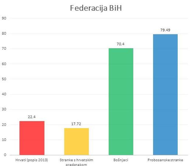 Brojke neumoljivo pokazuju da za probosanske stranke ne glasaju samo Bošnjaci, kao što tvrdi Čović, jer da je tako, probosanske stranke bi imale oko 70% glasova (koliko je Bošnjaka u Federaciji), a ne čak 79% glasova.