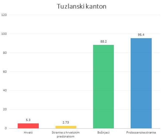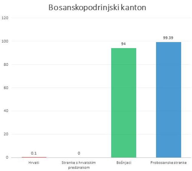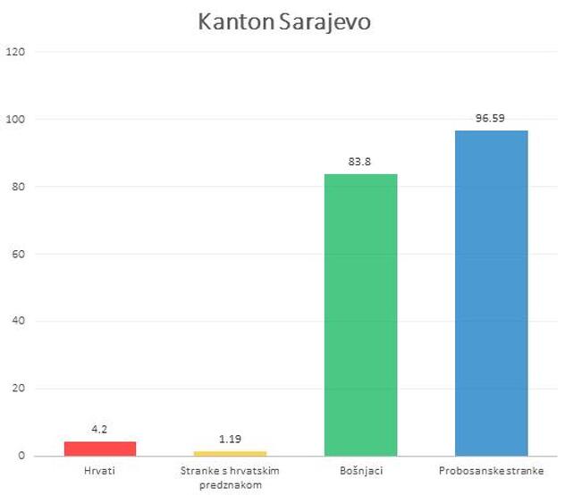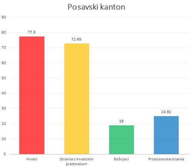 Tako je, recimo, u SBK Bošnjaka za 50% više od Hrvata, ali probosanske stranke na izborima za Skupštinu SBK osvajaju 100% više glasova od stranka s hrvatskim predznakom.