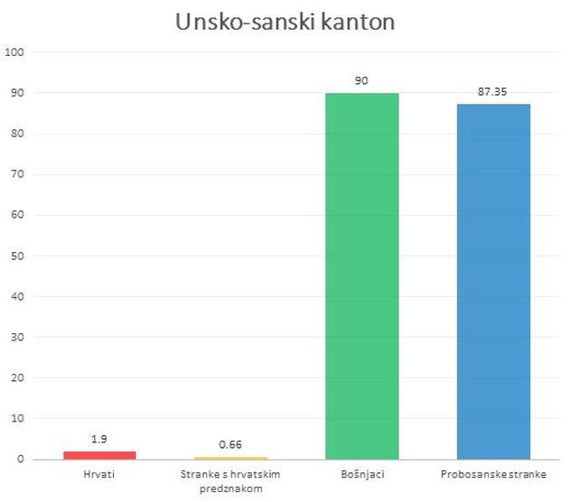 Kada se pogledaju podaci, jedini izuzetak je Unsko-sanski kanton, gdje probosanske stranke imaju manje glasova od procenta Bošnjaka, a razlog tome jesu bošnjački glasovi koje osvajaju Laburistička stranka Fikreta Abdića i DNZ, koje se ne deklarišu kao probosanske stranke.