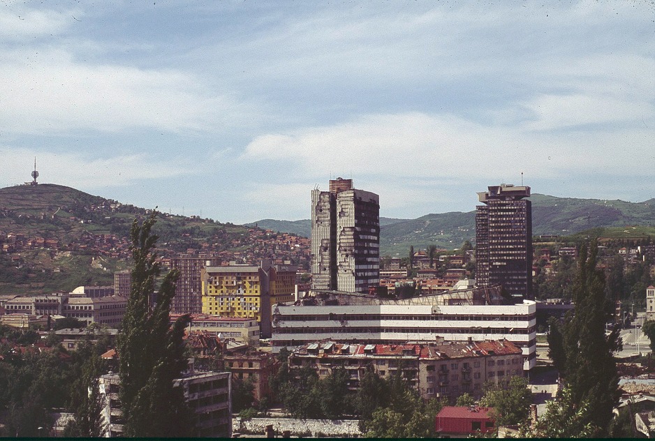 Ali, 6. aprila 1992., za vrijeme demonstracija ispred zgrade Parlamenta BiH, snajperisti lojalni Karadžiću pucali iz hotela po demonstarntima. Tada su ga zauzele snage bosanske Vlade i uhapsili snajperiste a Karadžić i njegova pratnja već su bili pobjegli.