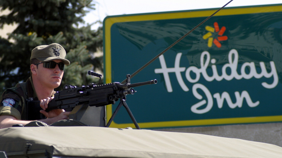 Hotel je bio u središtu "snajperske aleje", područja koje je bilo jedno od najopasnijih u gradu, u neposrednoj blizini prve borbene linije. Dopisnik BBC-ja, Martin Bell, opisao je Holiday Inn za vrijeme opsade kao "nultu tačku".