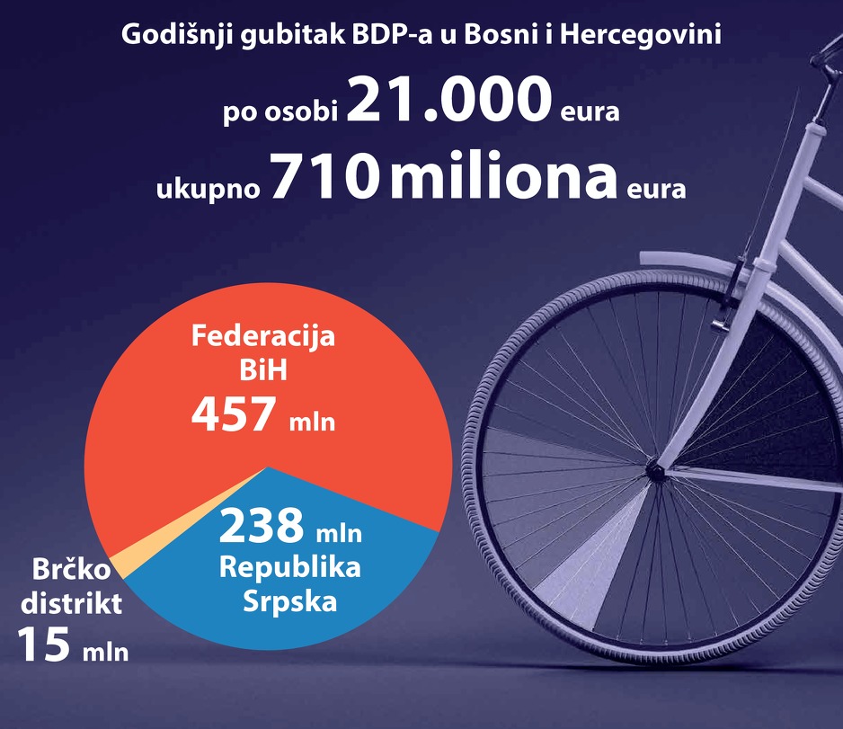 Prva studija o ovoj temi realizirana je na bazi javno dostupnih demografskih statistika, statistika obrazovanja i makroekonomskih podataka, a rezultati pokazuju da ukupni troškovi obrazovanja lica koja napuštaju Bosnu i Hercegovinu u jednoj godini, u zavisnosti od obrazovne strukture, variraju od skoro 650 miliona do nešto više od 800 miliona eura. Istovremeno, uslijed nemogućnosti da se godišnji odliv stanovništva spriječi njihovim zapošljavanjem, direktno i indirektno se generira godišnji gubitak potencijalnog BDP-a u iznosu od oko 710 miliona eura.
