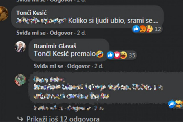 Dosta komentara Glavaš je lajkovao, a kada ga je neko, uz psovku u kojoj se spominju bog i majka, upitao koliko je ljudi pobio, Glavaš je odgovorio - "premalo" s nasmijanim emotikonom.