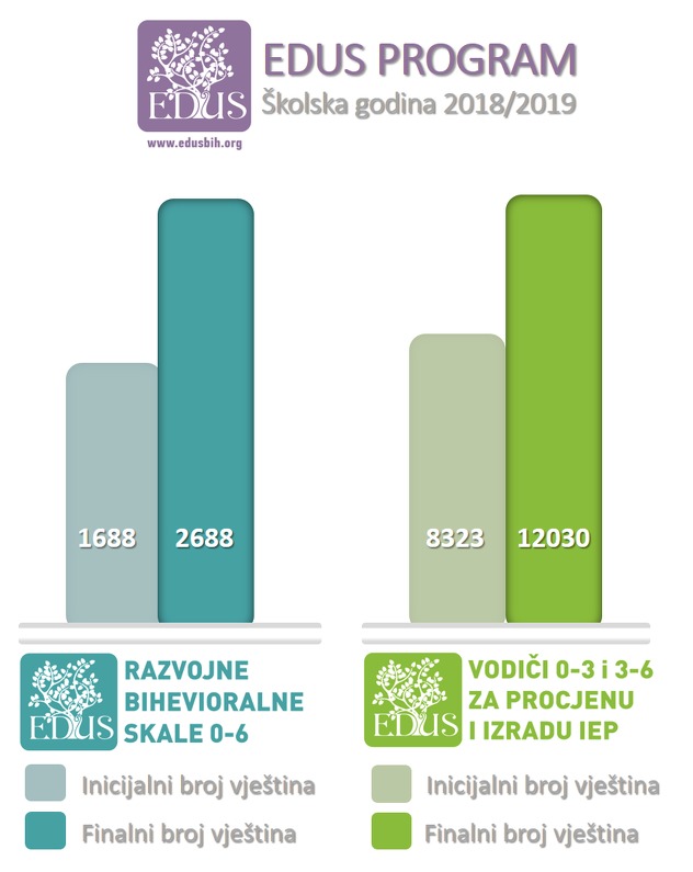 “Nakon 8 godina intenzivnog rada s djecom u EDUS programu, rezultati ukazuju da je minimalno 3 sata efektivnog dnevnog rada s djecom u Ranoj intervaniciji i 5 sati intenzivnog dnevnog rada sa vrtićkim grupama, neophodno da bi se ostvario kontinuiran napredak djece”, izjavila je voditeljica Rane intervencije EDUS programa, Džana Semanić-Hrvić, koju pohađaju djeca od 18 mjeseci do tri godine starosti o svom iskustvu s djecom kaže: