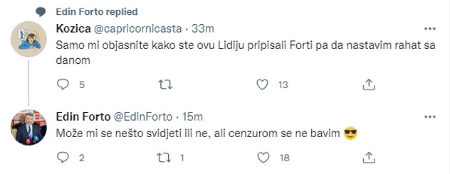 "Samo mi objasnite kako ste ovu Lidiju pripisali Forti pa da nastavim rahat sa danom", napisao je jedan od korisnika Twittera.