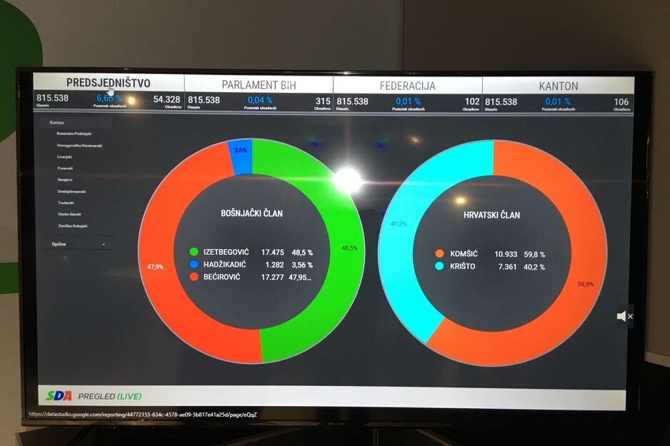 U izbornom štabu Stranke demokratske akcije u toku je praćenje brojanja glasova za člana Predsjedništva BiH. Prema prvim informacijama, čini se da je veoma neizvjesna borba između Bakira Izetbegovića i Denisa Bećirovića.