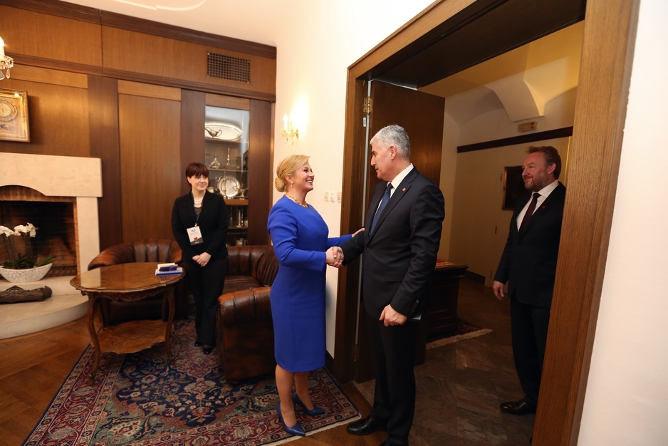 Članovi Predsjedništva BiH su na početku susreta čestitali predsjednici Republike Hrvatske na preuzetoj dužnosti i poželjeli joj uspjeh u radu.