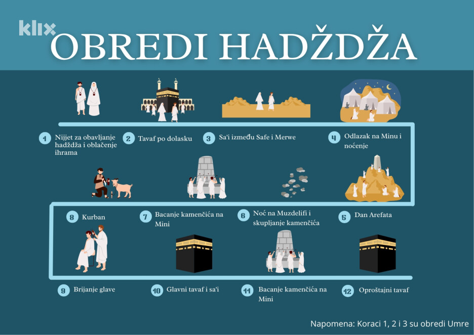 "Taj dan je najvrijedniji dan, dan kada Allah dž. š. prašta svojim robovima. U svim obredima slijedimo stope poslanika Muhammeda a. s. jer je kazao da se od njega uzmu obredi hadždža, tako da se boravi na svetim mjestima, planinama, od Kabe, Muzdelife, Mine, Arefata...", dodao je Halilović.
