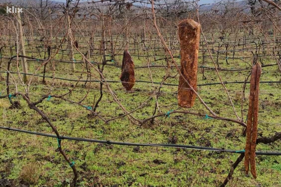 Tako je danas obrezano nekoliko grančica s trsa, koje su blagoslovljene starim vinom, a na njih su obješene kobasice i panceta, koji znakovito naznačuju želju za plodnošću i dobrim urodom.