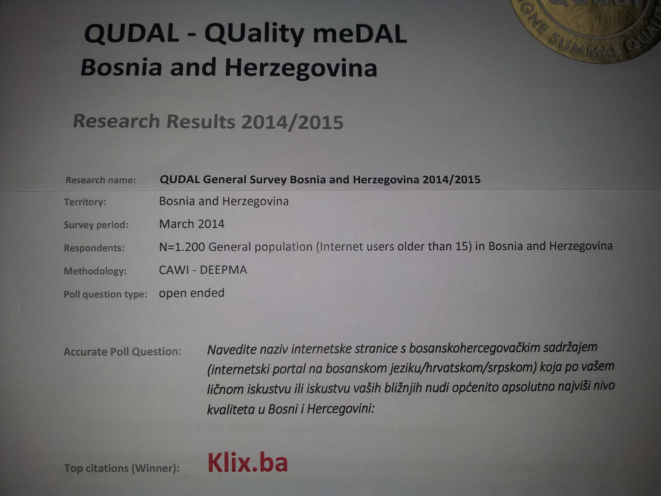 Klix.ba je najkvalitetniji internet portal u Bosni i Hercegovini, pokazalo je istraživanje QUDAL-a.