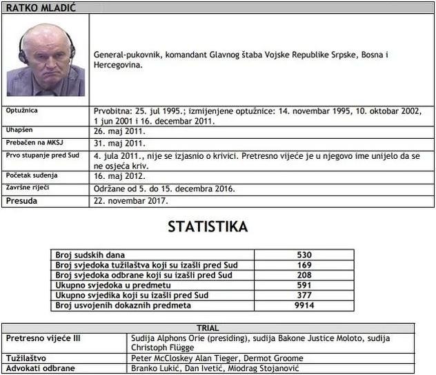 11:51 - Sudsko vijeće je istaklo da je Mladić na terenu u Srebrenici davao naredbe, ali isto tako i da je svjesno davao obmanjujuće informacije da mediji ne bi saznali istinu.