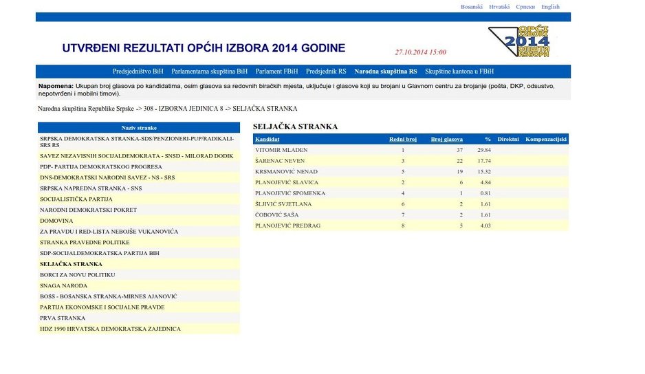Najlošije rezultate stranaka sa najviše osvojenih glasova pribilježila je Mira Vranić (Savez za promjene) - 45, odnosno Ivana ihajlović (SNSD-DNS-SP) - 633.