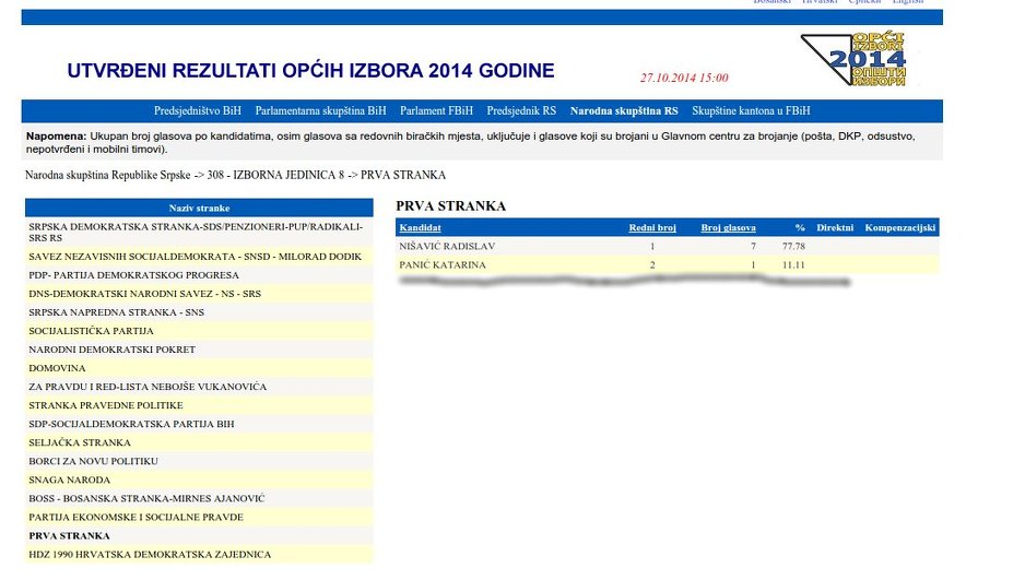 Najmanje glasova za NSRS uknjižili su Katarina Panić iz Prve stranke, Spomenka Planojević iz Seljačke stranke i Ilina Brković iz Složne narodne stranke - svega jedan glas, najvjerovatnije svoj.