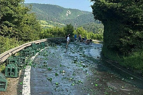 Prema informacijama i fotografijama koje je dostavio čitatelj, radi se o gajbama punim staklenih flaša koje su ispale s teretnog vozila i rasule se po kolovozu.